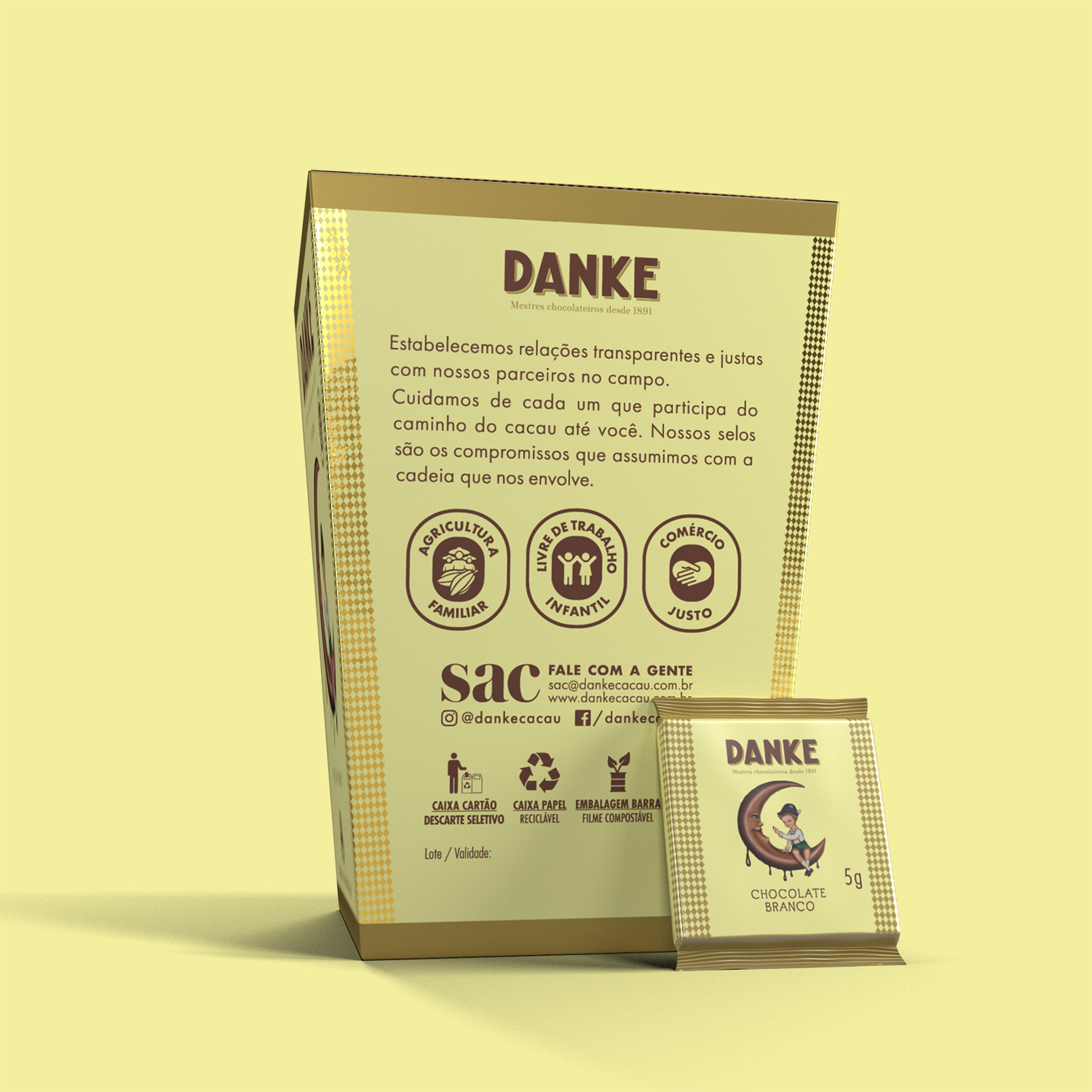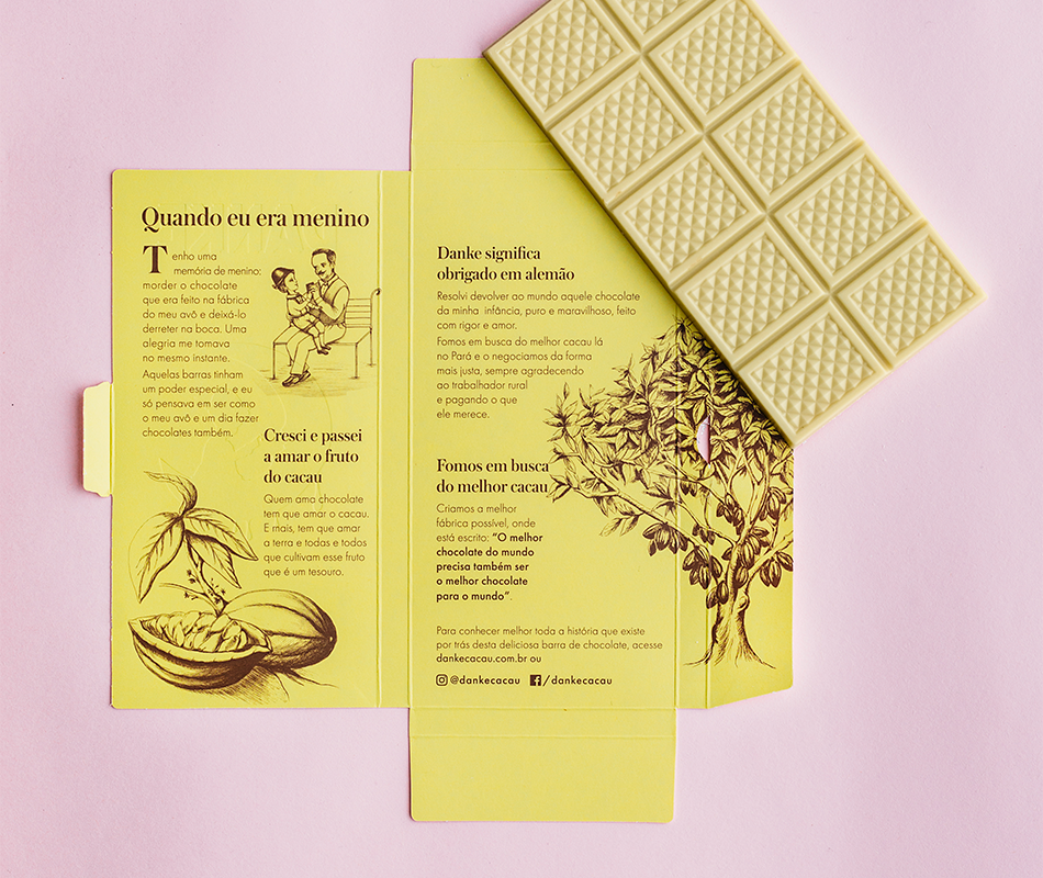 Danke é o agradecimento do fundador a mais de 100 anos de sustento que o cacau proporcionou à si e sua família. É um agradecimento ao cacau e aos trabalhadores do campo, um chocolate feito com respeito à terra e aqueles que a cultivam.